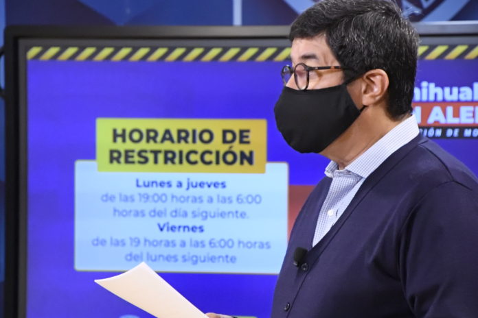 En cuanto al Acuerdo del 10 de agosto, reiteró que ha sido nuevamente ajustado el lunes 2 de noviembre con el horario de restricción, que significa que se restringe la movilidad dentro del territorio del estado de Chihuahua, de lunes a jueves, de las 19:00 horas (7 de la tarde), a las 6:00 horas; y los fines de semana, a partir de las 19:00 horas del viernes, hasta las 6:00 am del lunes.