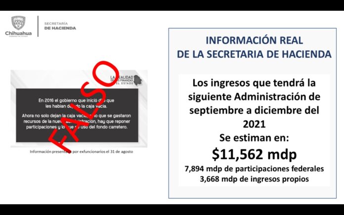 El secretario recordó que el Gobierno de Javier Corral recibió la administración con las cuentas en cero, prácticamente todas, las federales y las estatales y con 21 millones de pesos disponibles en caja.