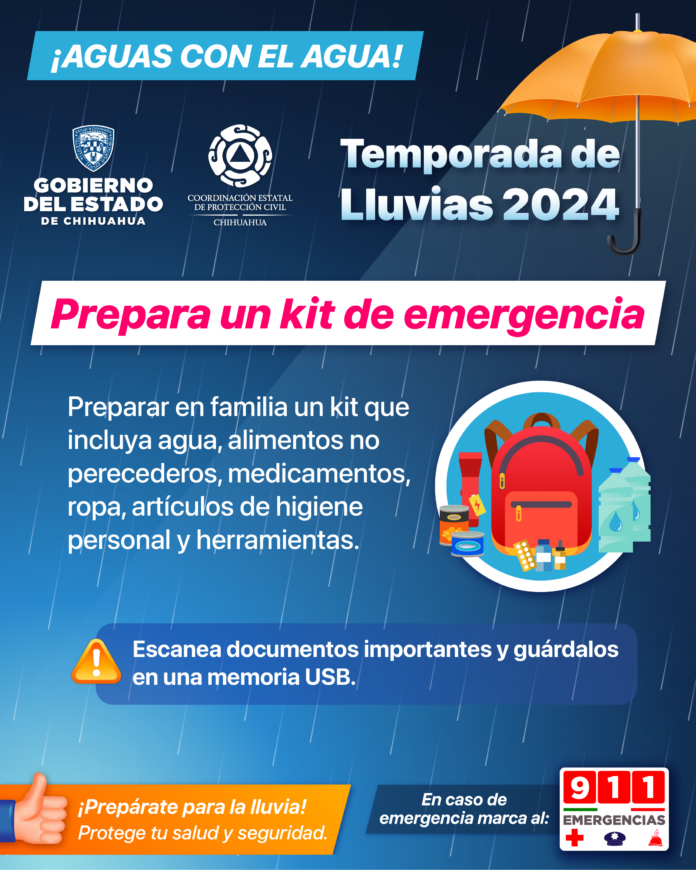 Protección Civil emite recomendaciones por lluvias en Chihuahua; exhorta a seguir medidas preventivas. Comunicarse al 9-1-1 en caso de emergencia.