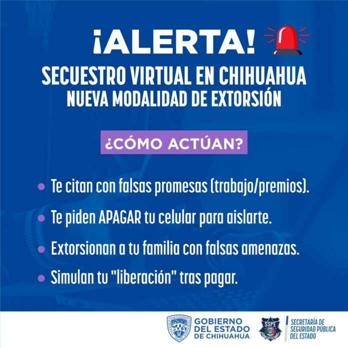Chihuahua, Chih. (ADN/Staff) – La preocupación por la seguridad pública en México ha tomado diversas formas a lo largo de los años, y en el estado de Chihuahua esta realidad no es distinta. Recientemente, la Secretaría de Seguridad Pública del Estado (SSPE) ha emitido un llamado de atención sobre un nuevo método delictivo que ha surgido en la región: el “secuestro virtual”.