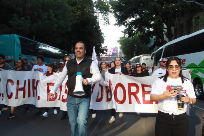 “Simplemente, una parte del contingente de Chihuahua, íbamos por una calle adyacente e intentamos incorporarnos al Paseo de la Reforma, pero fue materialmente imposible, hasta que pudimos incorporarnos al contingente por la Alameda” dijo.