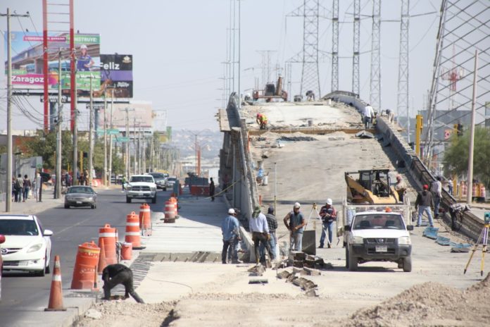 Ciudad Juárez, CHih. – El paso superior “Chihuahua Adelante”, sobre la avenida De las Torres y Boulevard Zaragoza en Ciudad Juárez, lleva un avance del 88 por ciento, informó el subsecretario de Obras Públicas de la Frontera, Roberto Barraza Ornelas.