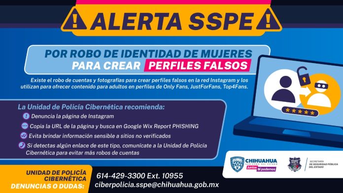 La Secretaría de Seguridad Pública del Estado (SSPE) alertó a través de la Unidad de Policía Cibernética sobre el robo de perfiles de mujeres en redes sociales por ciberdelincuentes, para crear cuentas falsas de sitios donde se distribuye contenido sexual.