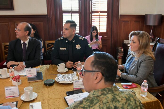 La gobernadora Maru Campos encabezó esta mañana la sesión de la Mesa de Coordinación para la Construcción de la Paz, donde en conjunto con representantes de los tres niveles de Gobierno, analizó la situación que guarda el estado en materia de seguridad.