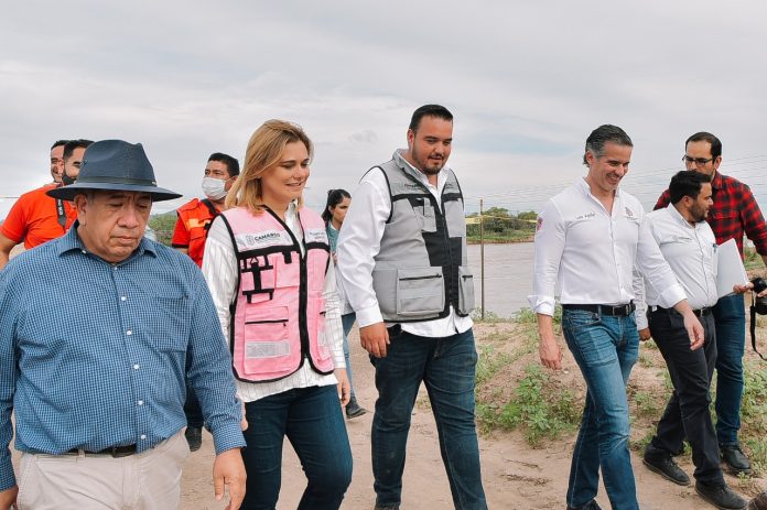 Acompañada por el presidente municipal Jorge Alejandro Aldana y el diputado local Luis Aguilar, así como por los Secretarios de Desarrollo Humano y Bien Común, Ignacio Galicia, y de Desarrollo Rural, Mauro Parada, Maru Campos pudo constatar los estragos que ocasionó el desbordamiento del Río Florido dejando inundados los cultivos e incomunicadas algunas de las comunidades de Camargo.