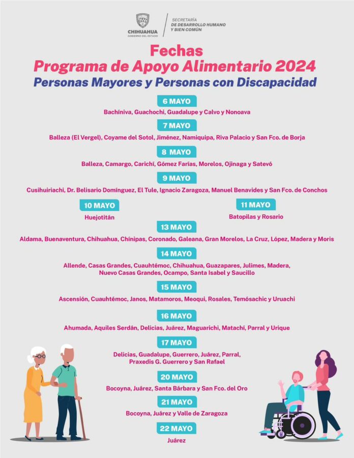 La Dirección de Grupos Vulnerables y Prevención a la Discriminación, de la Secretaría de Desarrollo Humano y Bien Común, dio a conocer el calendario de la segunda entrega de los programas alimentarios para personas adultas mayores o con discapacidad.