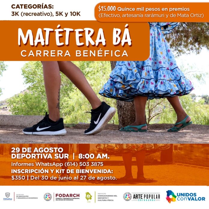 Chihuahua, Chih .- La Secretaría de Innovación y Desarrollo Económico, a través de Fomento y Desarrollo Artesanal del Estado de Chihuahua (Fodarch), en coordinación con el Instituto Chihuahuense del Deporte y Cultura Física (ICHD), anunció la carrera “Matétera Bá”, cuyos fondos serán destinados en apoyo a artesanos chihuahuenses afectados por la pandemia de SARS CoV-2.