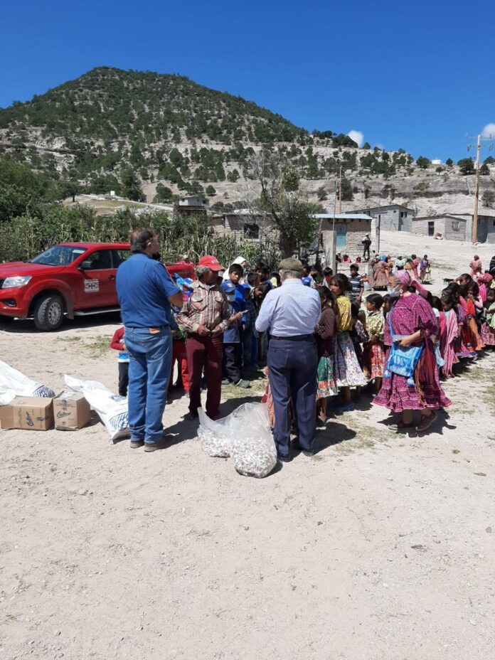 Los apoyos entregados consistieron en 800 kits compuestos por 30 kilos de maíz, 10 kilos de frijol, 3 purés de tomate de 800 gramos, y 1 kilo de pasta variada.