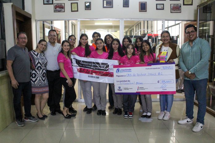 Chihuahua, Chih .- Con el fin de ayudar a que los jóvenes que continuen su preparación y alcancen sus metas, el Gobierno del Estado, a través del Instituto Chihuahuense de la Juventud (ICHIJUV), destinó 50 mil pesos al Club de Lectura del COBACH #1 para un viaje a Colombia.