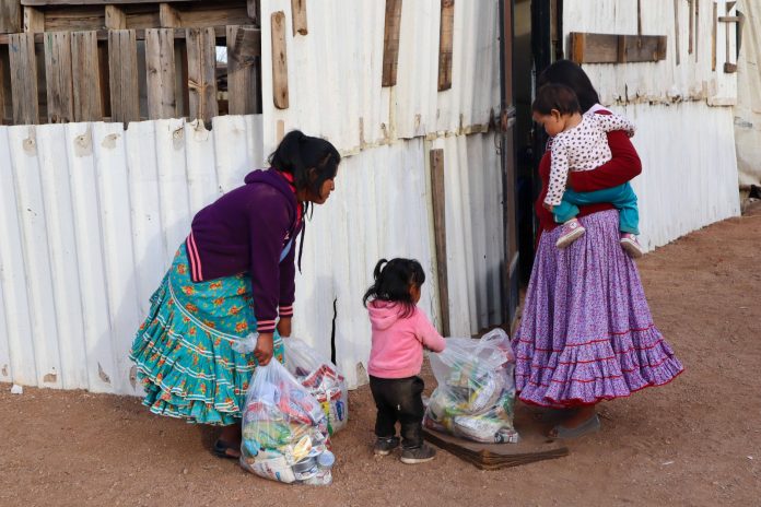 Chihuahua, Chih .- Con el objetivo de brindar apoyo alimentario a las familias chihuahuenses en estas fechas decembrinas, el DIF Estatal y la Secretaría de Pueblos y Comunidades Indígenas (SPyCI) unieron esfuerzos en una jornada de entrega de despensas, dirigida a los asentamientos indígenas urbanos Cerro de la Cruz Baja y Rinconada los Nogales.