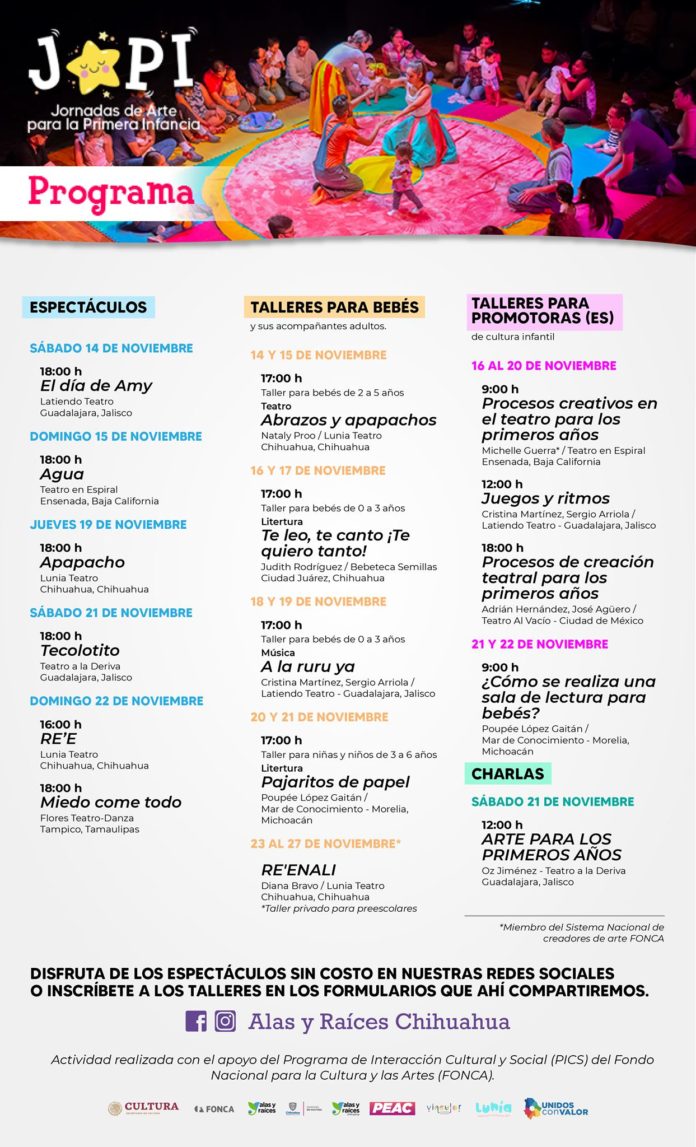 Dirigida a niñas y niños de cero a cinco años de edad, del 14 al 22 de noviembre; un programa institucional de la Secretaría de Cultura, DIF Estatal, Sipinna Chihuahua, Alas y Raíces y la compañía Lunia Teatro