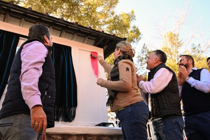 La gobernadora Maru Campos dio el banderazo de arranque al programa “Rutas Mágicas de Color”, para embellecer fachadas de viviendas y establecimientos de la localidad.
