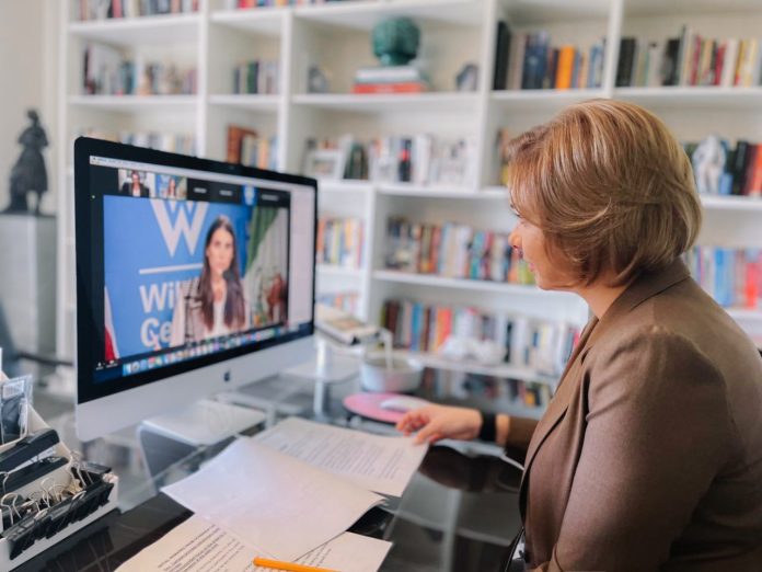 La gobernadora Maru Campos Galván participó vía ZOOM en la 8ª Conferencia Anual Construyendo una Frontera Competitiva México-Estados Unidos (Eighth Annual Building a Competitive U.S.-Mexico Border Conference), que se desarrolló en Washington, D. C. y fue organizada por el Centro Internacional para Académicos Woodrow Wilson.