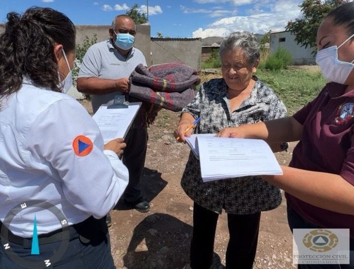 En el municipio de Janos, las precipitaciones generaron daños al patrimonio de varias familias, por lo que las autoridades distribuyeron desde láminas, despensas y botellas de agua a los afectados.