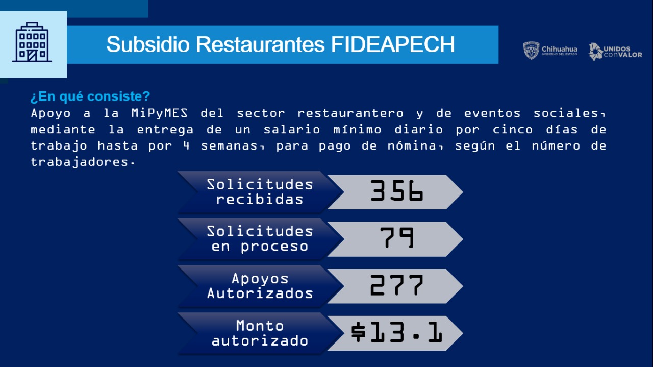 Al respecto, el gobernador Javier Corral afirmó: “hemos buscado todas las maneras posibles de apoyar a nuestra gente, porque si de algo estamos conscientes y preocupados, es del impacto que en muchos negocios la pandemia ha tenido, particularmente aquellos que estaban arrancando o que tienen un tamaño mediano o pequeños y que requieren un apoyo para poder subsistir”.