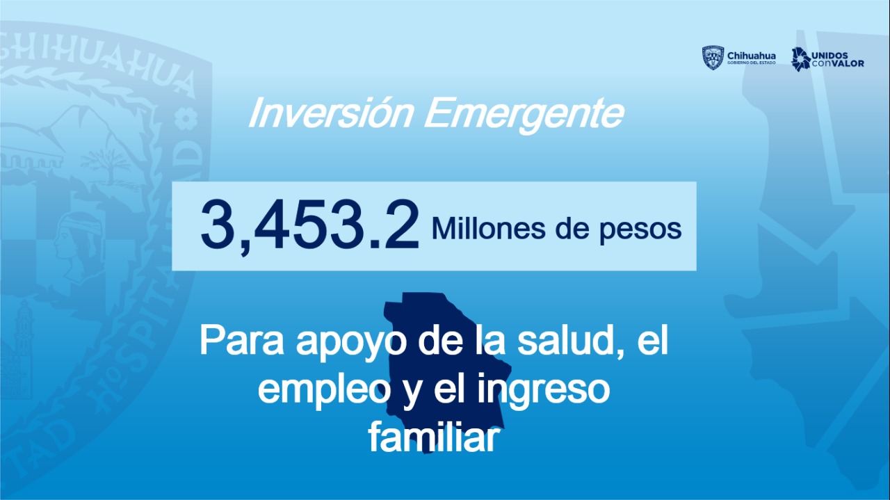 Chihuahua, Chih. – El gobernador Javier Corral informó que el monto del Plan Emergente de Apoyo y Protección a la Salud, Empleo e Ingreso Familiar se incrementó a un total de 3 mil 453 millones 200 mil pesos, con las más recientes aportaciones por 8.1 millones de pesos (mdp).