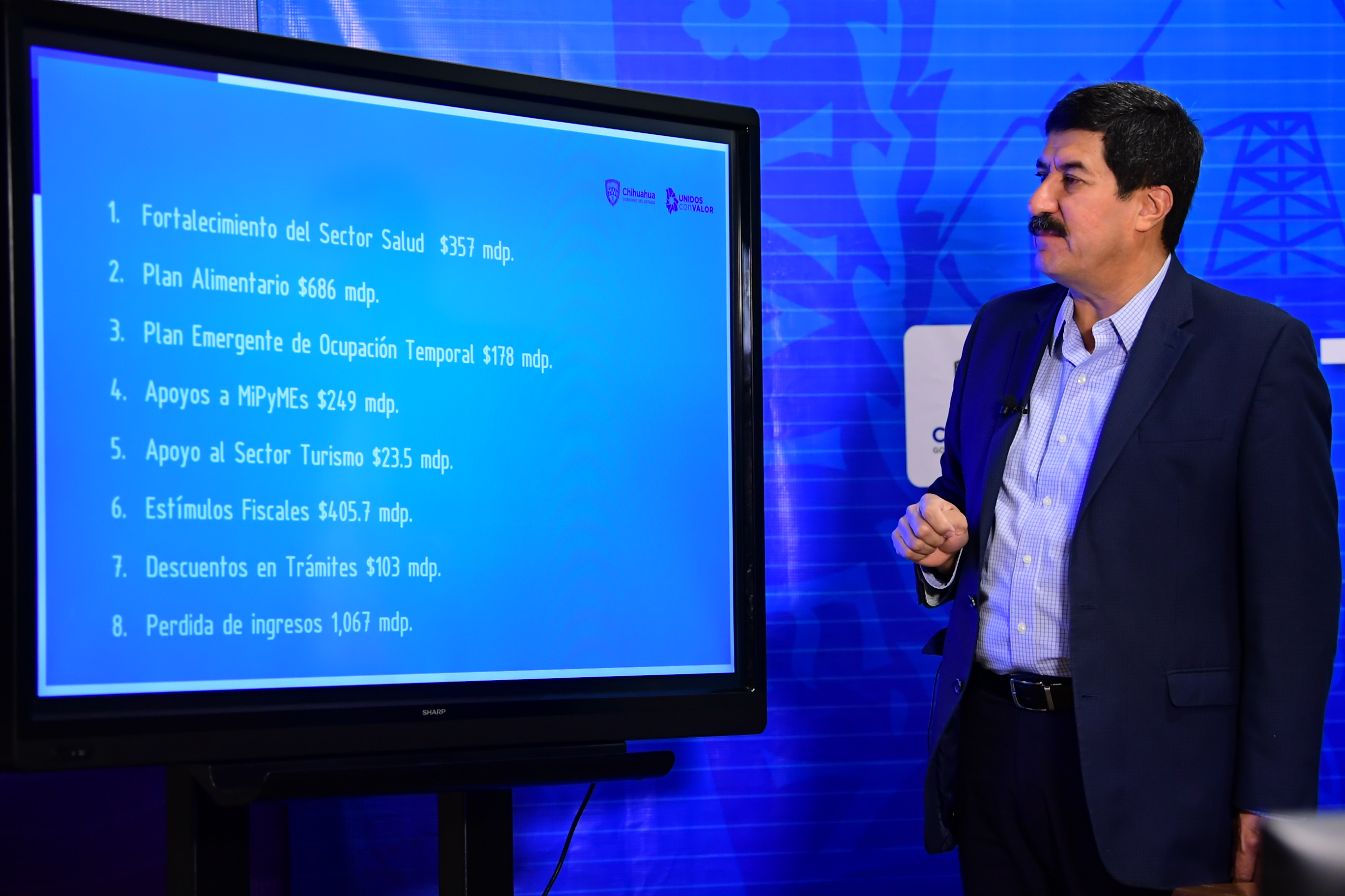 Destaca el gobernador Javier Corral la distribuirán en los principales rubros, que son: Plan Alimentario, 686 mdp; Ocupación Temporal, 178 mdp; MiPyMES (global) 249 millones; Fortalecimiento al Sector Salud, 357 mdp; Apoyo al Turismo, 23.5 mdp; Estímulos Fiscales, 405.7 mdp y descuentos en pagos por 103 mdp