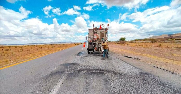 El programa de bacheo en tramos federales también contempla la carretera de Sueco a Janos y la Vía Corta a Parral, cuyos trabajos están por comenzar y que actualmente presentan un avance del 45 por ciento.