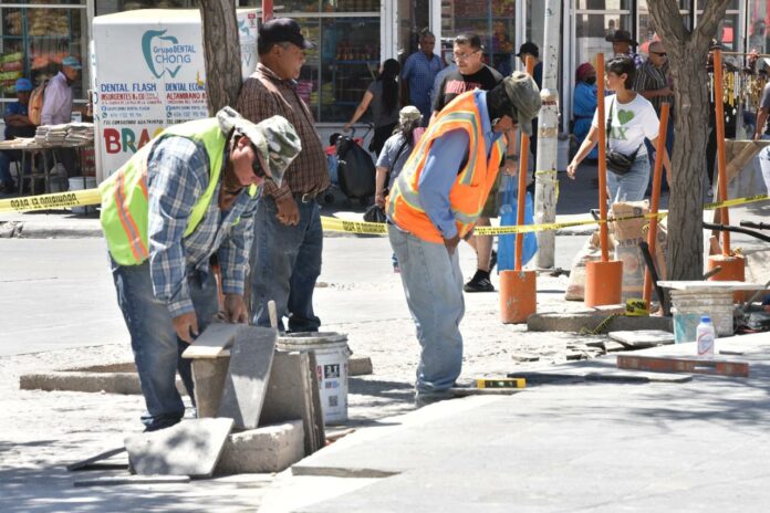 Chihuahua, Chih .- El Fideicomiso de Puentes Fronterizos de Chihuahua (FPFCH), informó que la rehabilitación del área peatonal de la avenida 16 de Septiembre así como la construcción de una estructura para sombra cerca de la calle Corregidora y la reparación general de infraestructura del Centro Histórico de la frontera, avanza de manera regular.