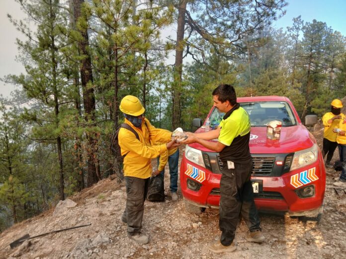 Los brigadistas, quienes arriesgan su vida para controlar el fuego y proteger las zonas afectadas, han recibido apoyos en especie, víveres y herramientas para facilitar su labor.
