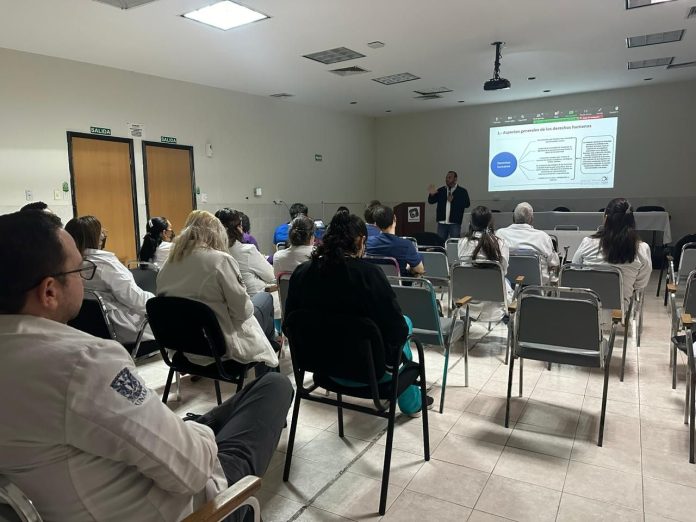 Chihuahua, Chih .- Pensiones Civiles del Estado (PCE) a través del departamento de Enseñanza capacitó los profesionales de la salud en el tema “Derechos humanos en la práctica médica” realizada de manera presencial en Chihuahua y de forma virtual en las delegaciones de Chihuahua, Nuevo Casas Grandes, Ojinaga, Cuauhtémoc, Juárez y Parral.