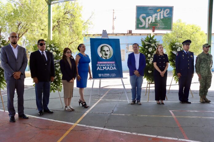 Con motivo del 36° aniversario luctuoso del destacado historiador y político chihuahuense Francisco R. Almada, la diputada Carla Rivas participó en una emotiva guardia de honor en la escuela primaria que lleva su nombre, ubicada en la colonia Rosario. Este evento se llevó a cabo el 4 de junio de 2025 y reunió a diversas personalidades del ámbito educativo y militar, así como a familiares y alumnos.