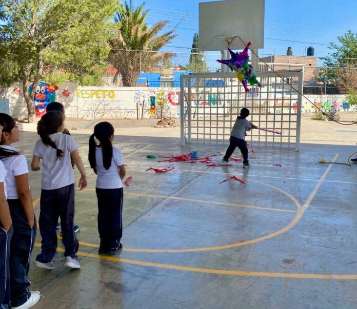 Carla Rivas lleva alegría a la niñez chihuahuense con piñatas y regalos en escuela primaria