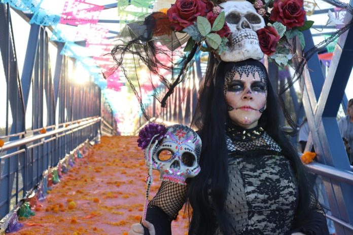 Ciudad Juárez, Chih .– El Parque Central de Ciudad Juárez fue el lugar en donde las y los juarenses se dieron cita para celebrar el Día de Muertos en grande, en un evento que honró las tradiciones mexicanas e inició con la presentación de la cantante Liz Perea, quien entonó canciones típicas de esta celebración.