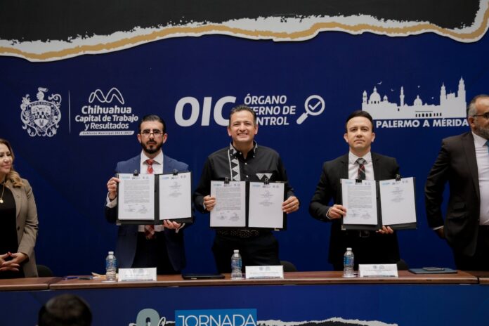 Chihuahua, Chih. (ADN/Staff) – Con la firma de un convenio orientado a fortalecer la transparencia en las compras públicas y la integridad empresarial, el alcalde de Chihuahua, Marco Bonilla Mendoza, clausuró este jueves la Segunda Jornada Anticorrupción. Durante tres días, funcionarios, representantes del sector privado y ciudadanía participaron en una serie de actividades enfocadas en promover una cultura de honestidad en la función pública.