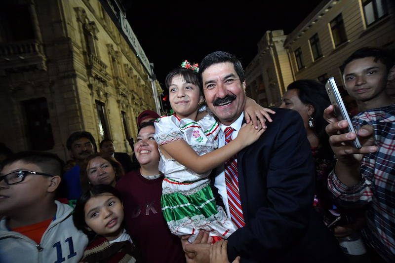 Conviven Gobernador Javier Corral y su esposa Cinthia Chavira con asistentes al Grito