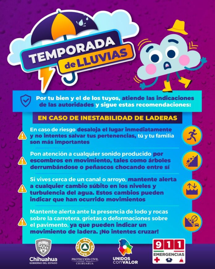 Se espera comiencen dentro de una hora aproximadamente, por lo que piden tomar precauciones; también se advierte a la población de Namiquipa, Guerrero, Cuauhtémoc, Aldama, Camargo, Allende, Jiménez, López y Coronado.