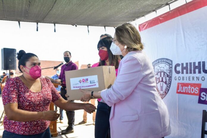 Chihuahua, Chih .- El Gobierno del Estado, a través del DIF Estatal, llevó a cabo la entrega de 500 paquetes alimentarios a vecinos de la colonia Los Llanos de la ciudad de Chihuahua, en conmemoración al Día Mundial de la Alimentación.