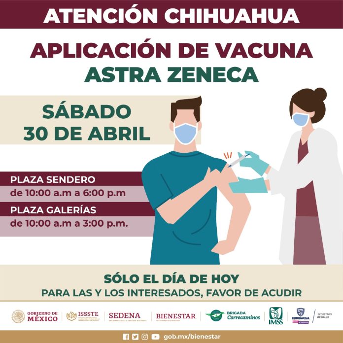 Chihuahua, Chih. (ADN / Martín Orquiz) – De manera extraordinaria se llevará a cabo un operativo de vacunación contra Covid-19 este sábado 30 de abril en centros comerciales de la Ciudad de Chihuahua.