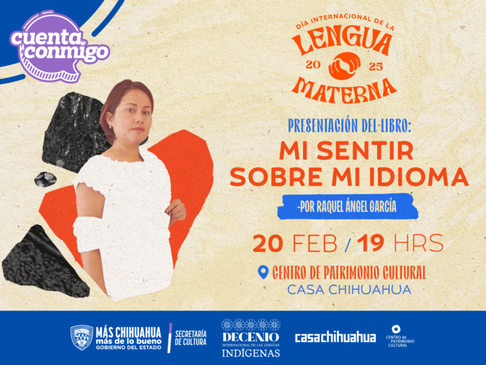 Chihuahua, Chih. (ADN/Staff) – El 20 de febrero se conmemora el Día Internacional de la Lengua Materna, una fecha que busca promover la diversidad lingüística y cultural presente en el mundo. En este contexto, Casa Chihuahua, un importante centro cultural en el estado, llevará a cabo la presentación del libro “Mi sentir sobre mi idioma”, una obra de la autora Raquel Ángel García, originaria de Santa Cruz Panixtlahuaca, Oaxaca.