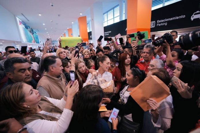 Desde su llegada al aeropuerto internacional del estado, se notó un ambiente de entusiasmo entre los militantes que la esperaban. Las cámaras de los aficionados y profesionales capturaron cada momento del evento. Los cárteles y pancartas que decían “Chihuahua siempre contigo” se alzaban entre la multitud, mientras una batucada tradicional aportaba ritmo y energía al evento.