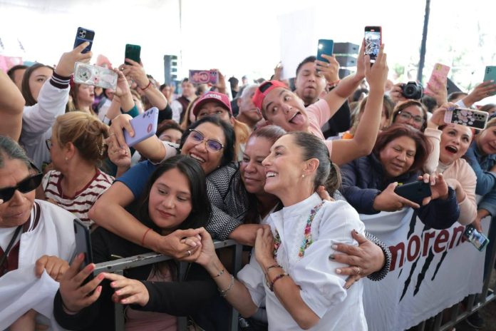 “México hoy brilla más que nunca porque hay justicia, porque cambió la forma de gobernar, porque ya no es la corrupción lo que nos distingue, sino el orgullo de ser mexicanos y mexicanas, nuestra historia, nuestra cultura y la dignidad del pueblo de México, así que nunca vamos a traicionar a la Cuarta Transformación”, añadió.