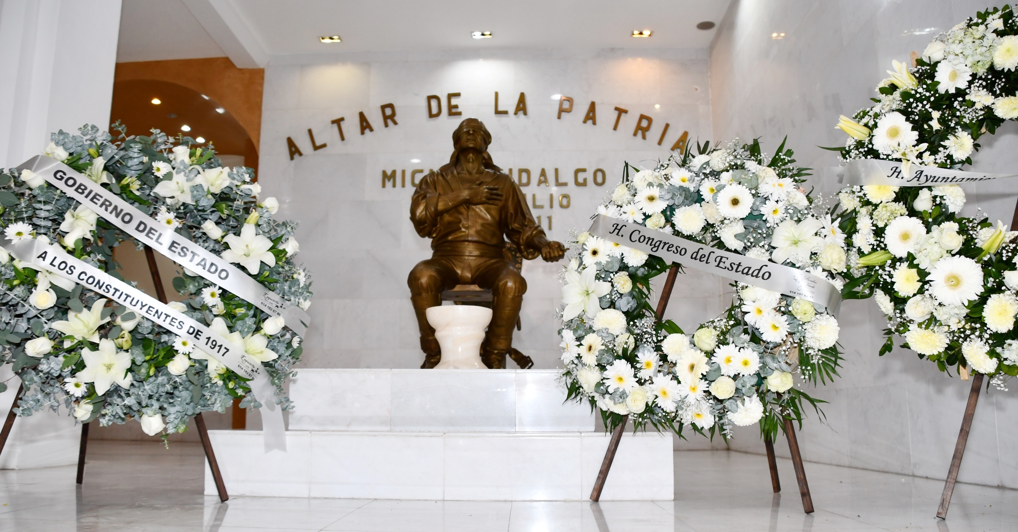 Chihuahua, Chih. – Con una ofrenda florar y guardia en honor a los constituyentes de 1917, autoridades educativas de la Secretaría de Educación y Deporte (SEyD) del Gobierno del Estado de Chihuahua conmemoraron el 104 Aniversario de la Promulgación de la Constitución Política de los Estados Unidos Mexicanos de 1917.