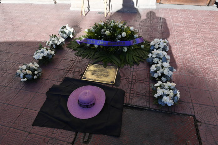 “Marisela cayó sobre esta banqueta, víctima del cobarde feminicidio orquestado por quienes querían callar una voz que a gritos demandaba justicia por la muerte de su hija Rubí. Desde la Cruz de Clavos Marisela llegó corriendo hasta el lugar, queriendo buscar refugio en un edificio que se tornó gélido para ella y cuyas puertas jamás se abrieron”, señaló.