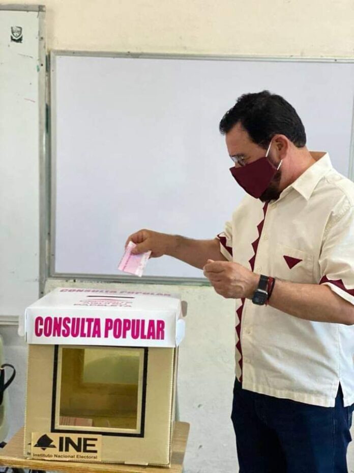 “El día de hoy primero de agosto por primera vez ejercí mi derecho a ser consultado quiero que se esclarezca el papel histórico y político de los expresidentes desde luego que voté por Salinas, por Zedillo por Fox, por Calderón y por Peña”, dijo.