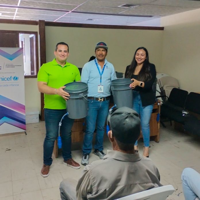 Octavio Villegas Casas, subsecretario de Desarrollo Humano, informó que en esta región se distribuyeron en total 100 apoyos otorgados por el Fondo de las Naciones Unidas para la Infancia (Unicef), a fin de que las personas los instalen fácilmente a una llave, cubeta o tinaco.