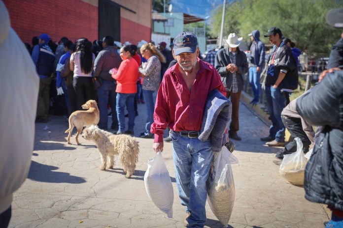 Chihuahua, Chih .- En el marco de la segunda etapa de la estrategia integral contra la sequía, el Gobierno del Estado, en colaboración con el Ayuntamiento de Chínipas, distribuyó un total de 40 toneladas de alimento, además de cobijas para 500 familias en la cabecera municipal.