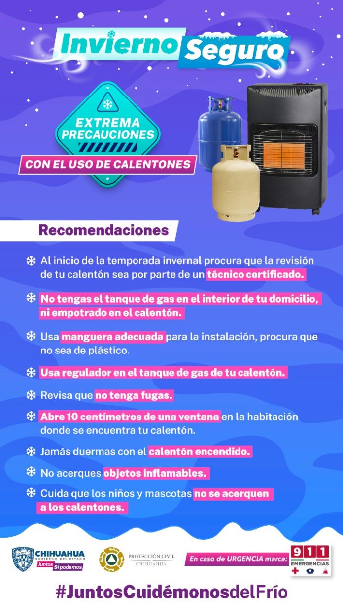 Chihuahua, Chih .- La CEPC, indica que el monóxido de carbono es un gas incoloro, altamente tóxico producido ante la incorrecta combustión de gas u otras sustancias similares, por ello la gran importancia de permitir la adecuada ventilación al encender los calentones.