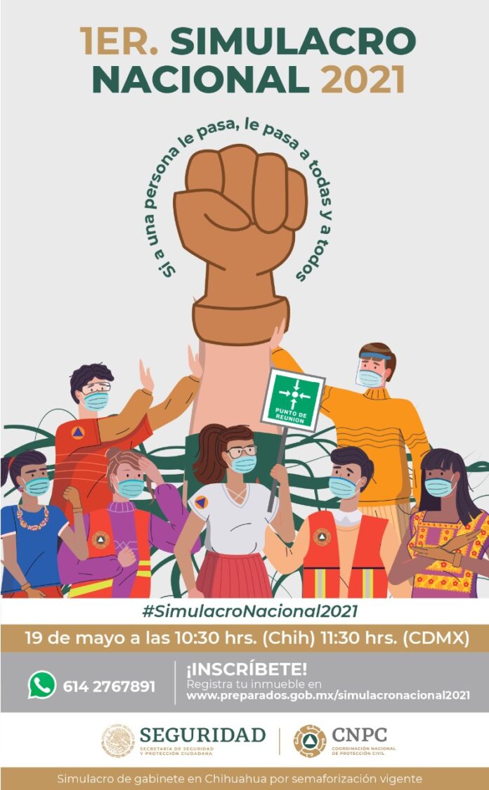 Chihuahua, Chih.- La Coordinación Estatal de Protección Civil del Estado de Chihuahua (CEPC), participará como elemento evaluador en varios inmuebles en el Macro Simulacro Nacional que se realizará el próximo miércoles 19 de mayo a las 10:30 horas (CUU) 11:30 (CDMX).