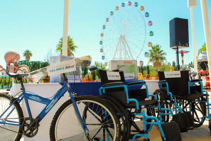 La Fundación entregó al DIF Estatal un total de 16 sillas de ruedas, 10 tablets, 10 multifuncionales y 12 bicicletas para niñas, niños y jóvenes.