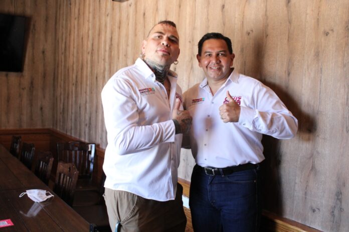 Ciudad Juárez, Chih. – Cruz Pérez Cuéllar, candidato a la presidencia municipal de Morena en la Coalición Juntos Haremos Historia en Chihuahua, y El Pagano, luchador profesional, hicieron una alianza por el deporte fronterizo, ambos coinciden en que la mejor manera de trabajar por la infancia y la adolescencia es a través del deporte.