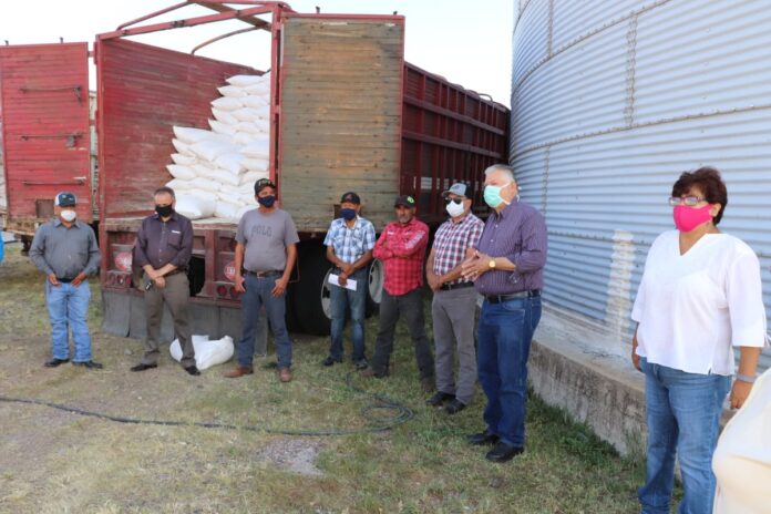 Cuauhtémoc, Chih. – Como parte del compromiso del Gobierno Municipal de Cuauhtémoc por atender las necesidades mas apremiantes de sus habitantes, el Presidente Municipal, Romeo Antonio Morales Esponda, encabezó la entrega de 200 toneladas de maíz molido a pequeños productores ganaderos que dispone la Dirección de Desarrollo Rural y que servirá como alimento de los hatos para paliar los efectos de la sequía.