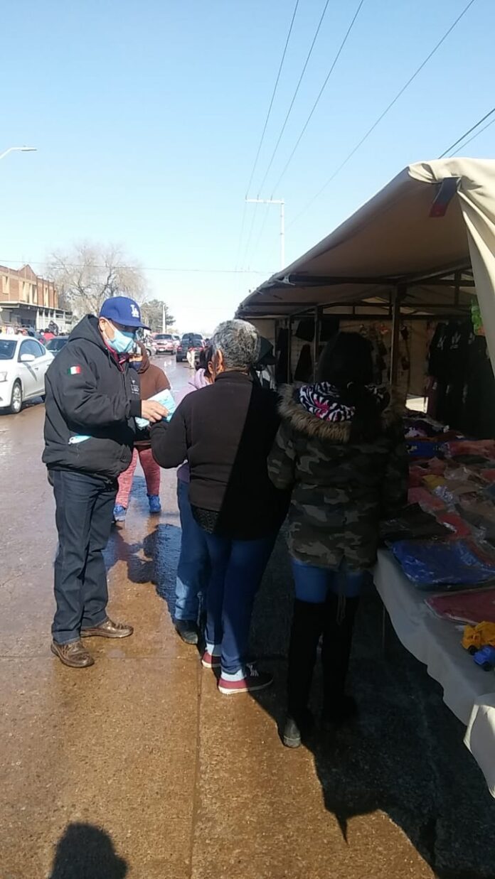 Cuauhtémoc, Chih. – Como parte de las acciones emprendidas para disminuir contagios por COVID-19 y en continuidad con la supervisión del cumplimiento a las medidas sanitarias, inspectores de Gobernación Municipal vigilan el uso de cubrebocas en la vía pública, asi como en los tianguis comerciales.