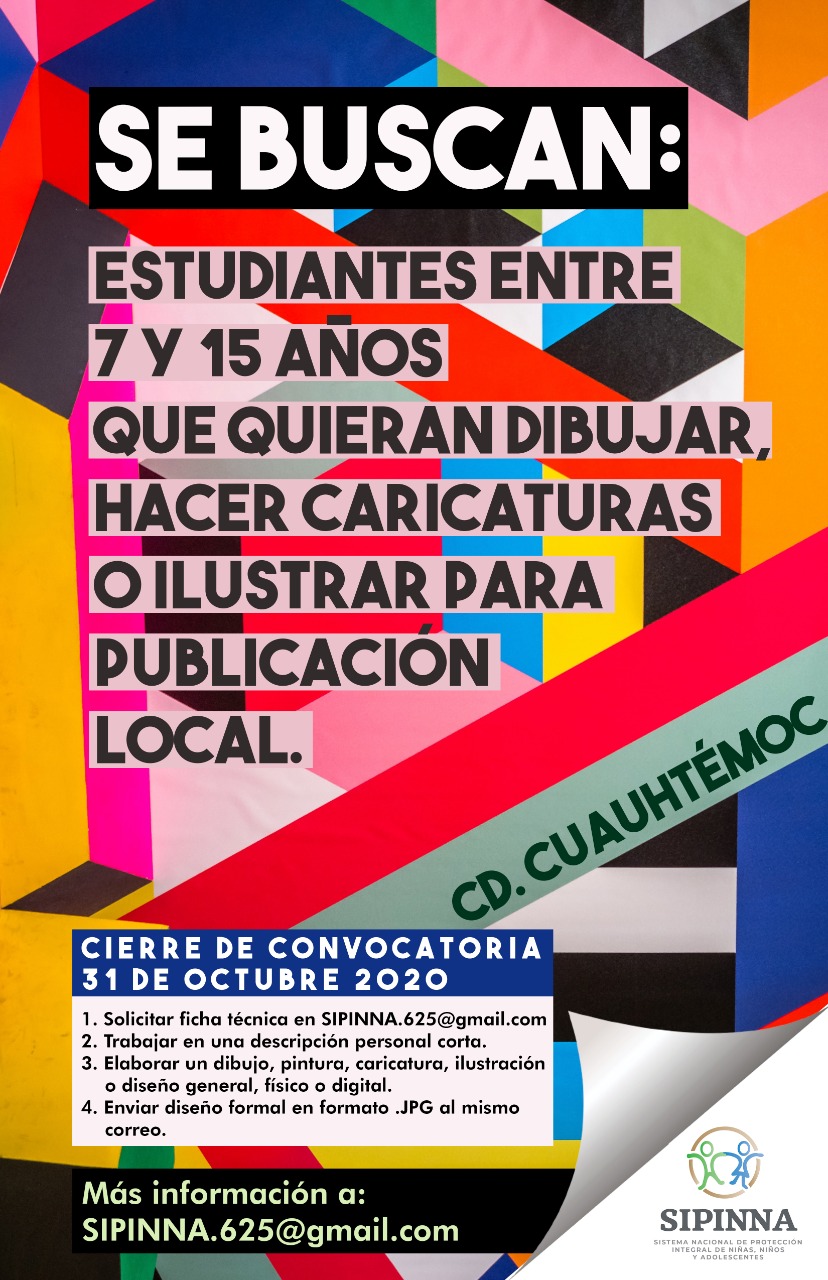Roxana Sánchez, titular de la oficina SIPINNA Cuauhtémoc, dependiente de la Secretaría del Ayuntamiento, emitió la convocatoria para estudiantes de entre 7 y 15 años de edad, que quieran dibujar, hacer caricaturas o ilustrar para la publicación local.