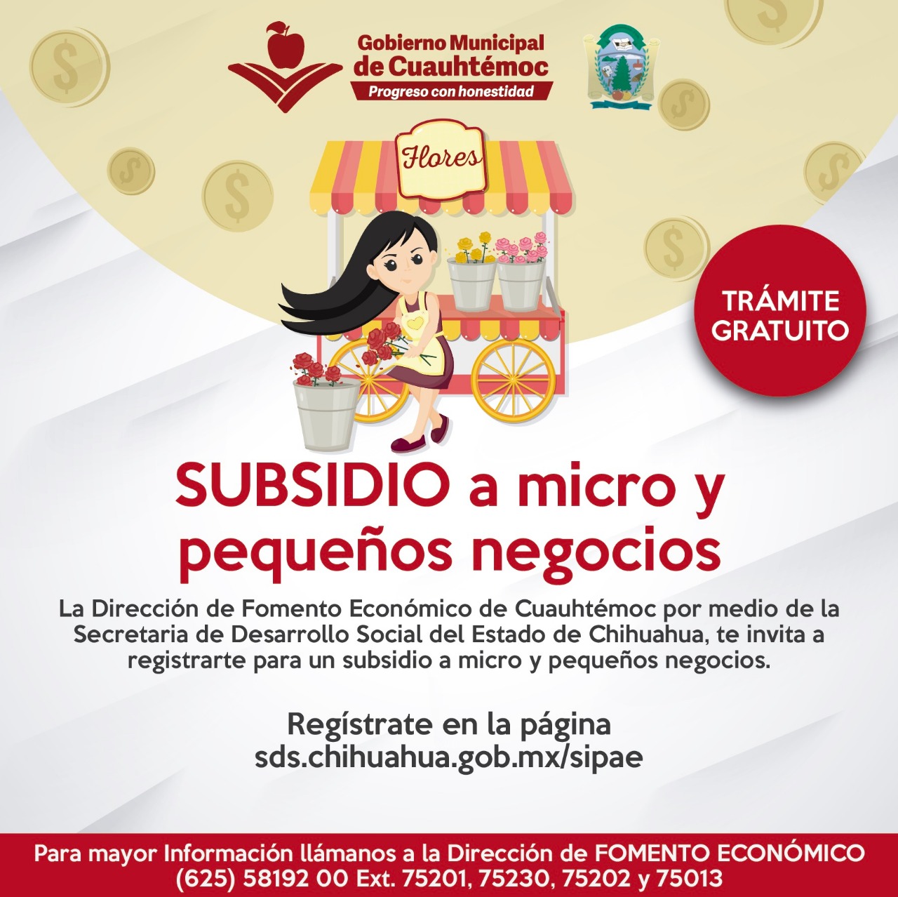 Cuauhtémoc, Chih. – La Secretaría de Desarrollo Social de Gobierno del Estado de Chihuahua a través de la Dirección de Fomento Económico de Cuauhtémoc, hace la invitación a registrarse para un subsidio a micro y pequeños negocios ya sean formales e informales, indicó el Director municipal Massio Cuilty Gallegos.