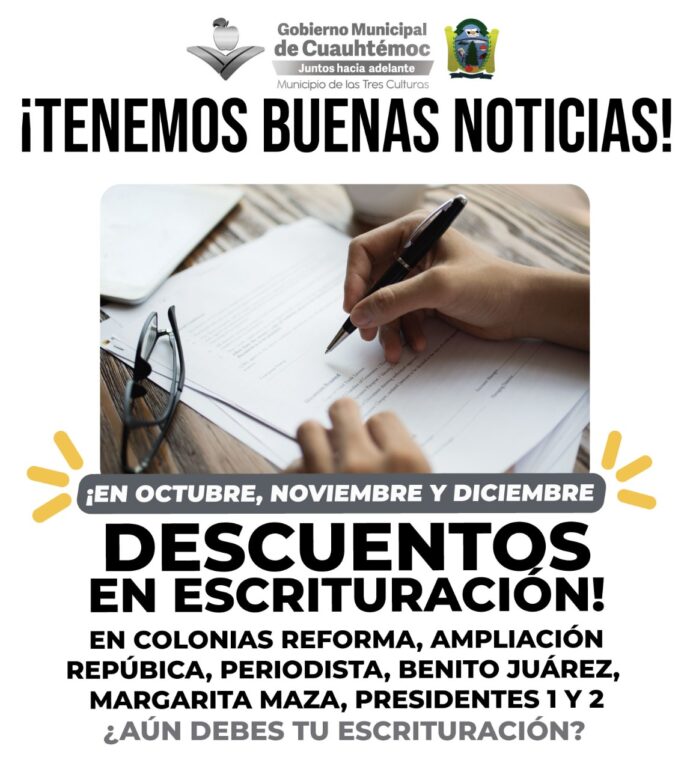 Cuauhtémoc ofrece descuentos para titulación de propiedades